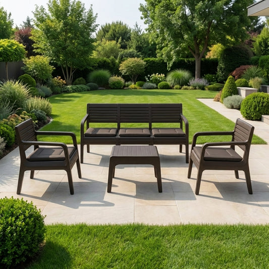 Градински комплект с възглавници 4 части - Троен Диван с 2 фотьойла и маса