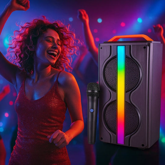 Преносима караоке тонколона с Bluetooth, LED светлини и 2 безжични микрофона