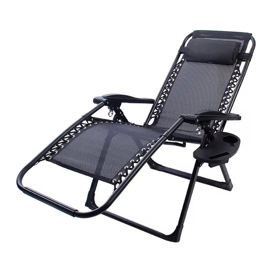 Сгъваем стол тип шезлонг с поставка за чаша и телефон
