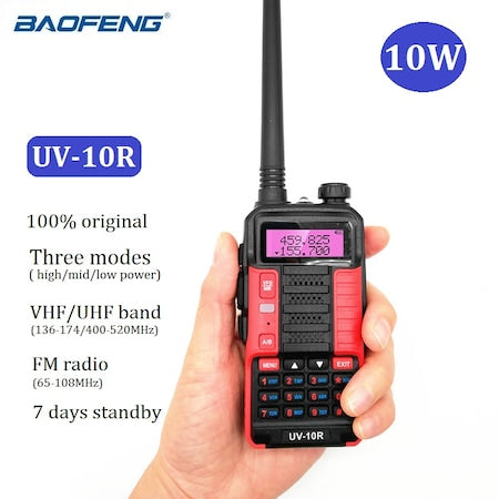 Преносима радиостанция Baofeng BF-UV10R, 10W, 5800mAh батерия, 128 канала, LCD Дисплей, Kynexi, Черен/Червен