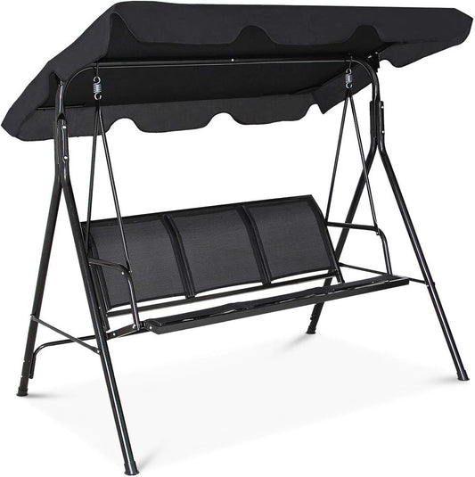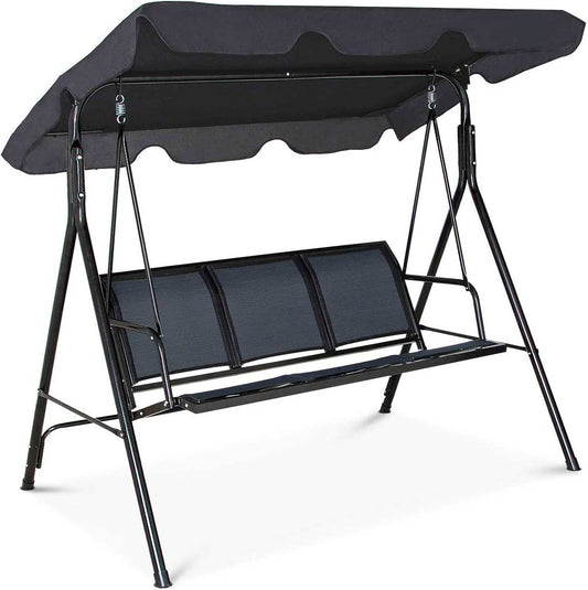 Градинска люлка VALERY до 300 кг, триместна със сенник - черна