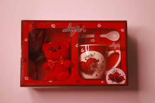 Подарък за Свети Валентин - чашка с лъжичка, мече и розичка