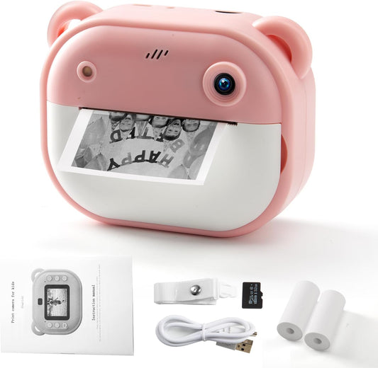 Мини детска камера с незабавно отпечатване на снимки , 1300mAh, 1080P, 2-инчов голям екран, 24mpx
