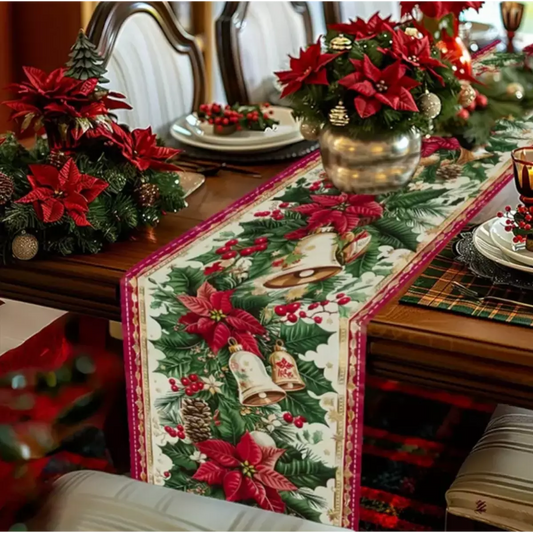 Коледен тишлайфер за маса с празничен надпис, 40х150см./ 33х183см.