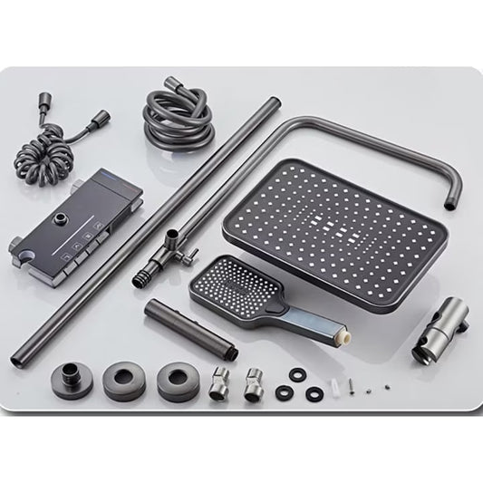 Комплект кран за душ AOVO, с дигитален дисплей, душ слушалка Rainfall, ръчен душ с 3 режима, 2-функционална струя за биде и кран за вана, сив