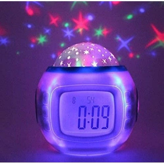 Мултифункционална лампа с часовник, термометър и календар music and story sky 1038