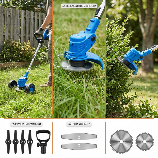 Акумулаторен тример за трева с колелца и 8 подаръка 36V 8A с телескопична дръжка