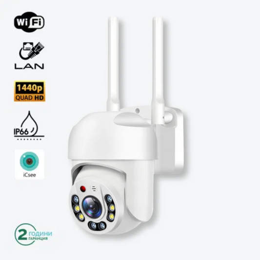 Въртяща IP безжична камера външен монтаж 5MPX с двойна леща