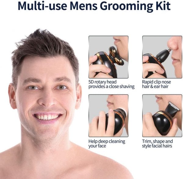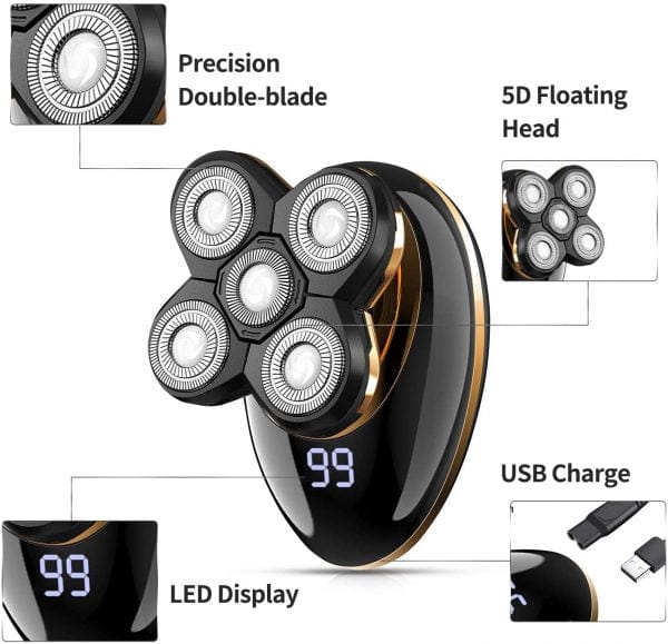 - Режеща глава с пет остриета: Система за 5D бръснене, която пасва на контура на лицето за точно улавяне на космите.