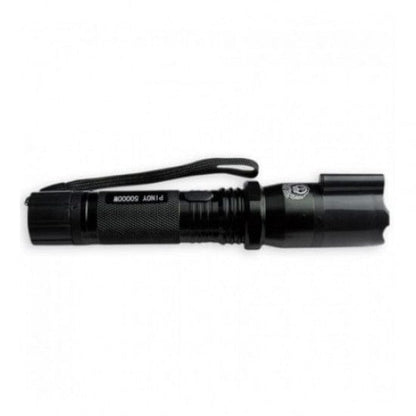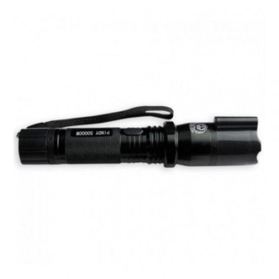 Мощен електрошок с фенер като много ефикасно средство за самозащита. Компактен и лек с много силна светлина и презареждаема батерия с дълъг живот. Алуминиево тяло, енергоспестяващ LED диод с дълъг живот на употреба и мощен червен лазер. Електродите на електрошока са вградени в ринга около рефлектора на фенера. Може да се ползва самостоятелно като фенер, лазер и като електрошок. Превключва се посредством предпазен бутон. Предпазва от агресивни нападатели, в това число и животни. Силно плаши агресивни кучета и от разстояние.