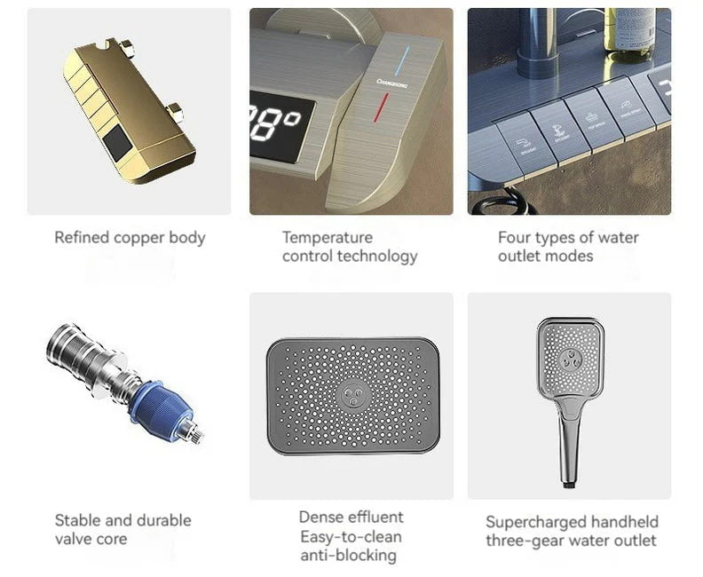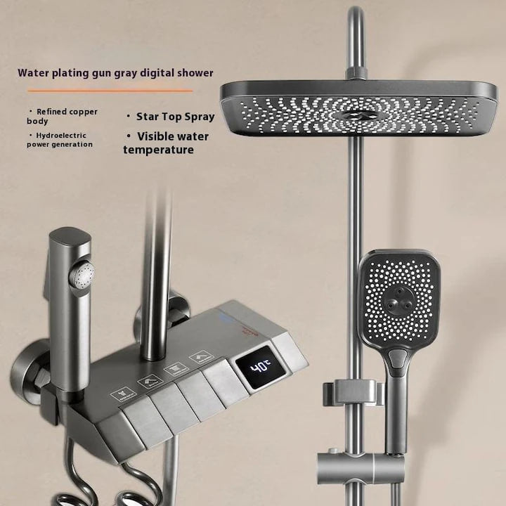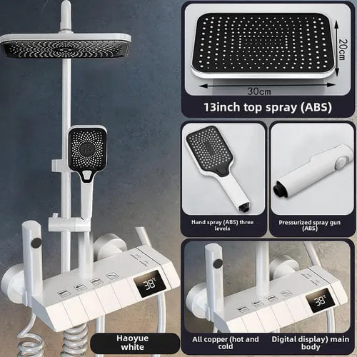 Интелигентна душ колона, LED дисплей, управление на пиано, 4 режима на пръскане, въртене на 360°, технология за въздушно пръскане