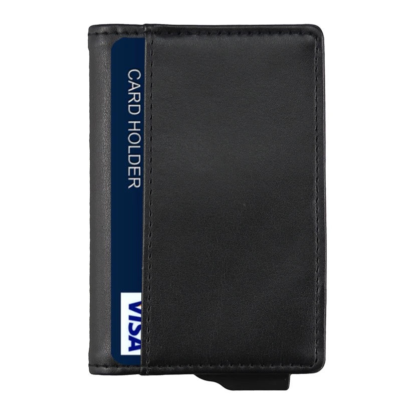 Коженият твърд калъф за карти с алуминиева вътрешност и RFID защита представлява изискан и интелигентен начин за съхранение на вашия финансов живот. Този калъф съчетава нежността и прочността на висококачествената кожа с вградена алуминиева вътрешност, осигурявайки ви непоколебима защита и стил. RFID технологията защитава вашите карти от евентуални кибернетични заплахи, докато функционалният дизайн предоставя удобство и организация при съхранението на кредитни и дебитни карти. Този калъф е идеалният аксесоар за изискания професионалист или пътешественик, комбиниращ лукс, сигурност и практичност в едно.