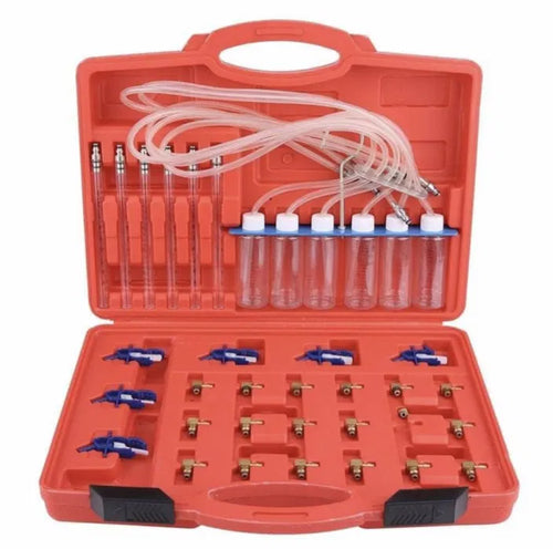К-кт. за тестване на комън рейл дюзи BOSCH, SIEMENS, DENSO и DELPHI : Целта на този уред е да се тества бързо и ефективно количеството гориво, което всеки инжектор връща в резервоара на автомобила . Така можете да разберете, ако има повреден инжектор. Удобства: . Директно измерване на потока на връщане на инжектора . Възможност за едновременно измерване. до 6 инжектори . Кутия за транспортиране и съхраняване.