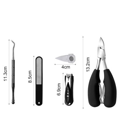 Този комплект от 5 части на AXROAD MALL е създаден за прецизна грижа за ноктите на ръцете и краката, особено подходящ за обработка на твърди, дебели или враснали нокти. Изработен от неръждаема стомана и ABS, той съчетава здравина, дълготрайност и комфорт при употреба.