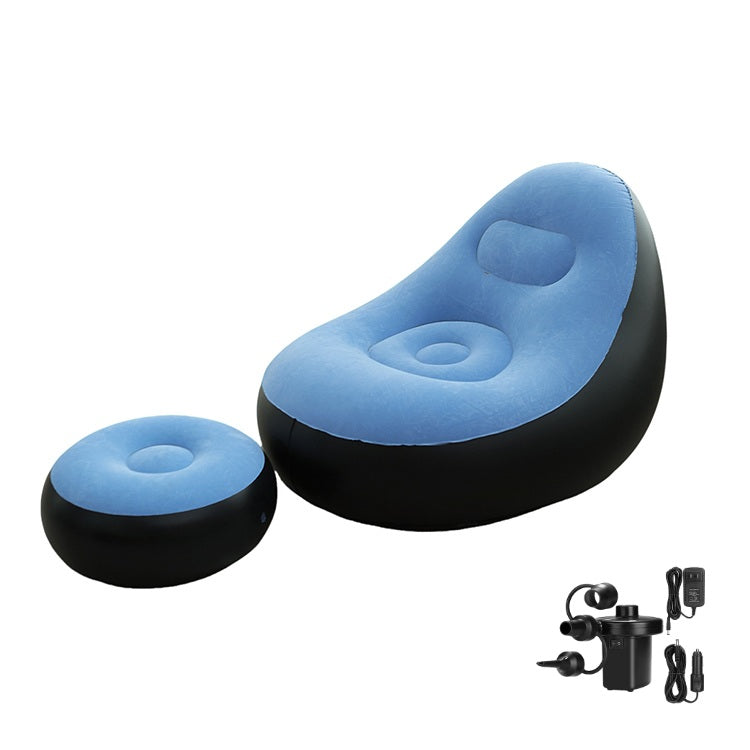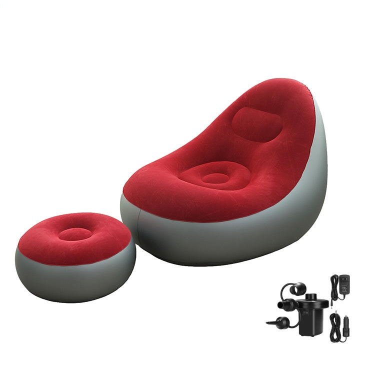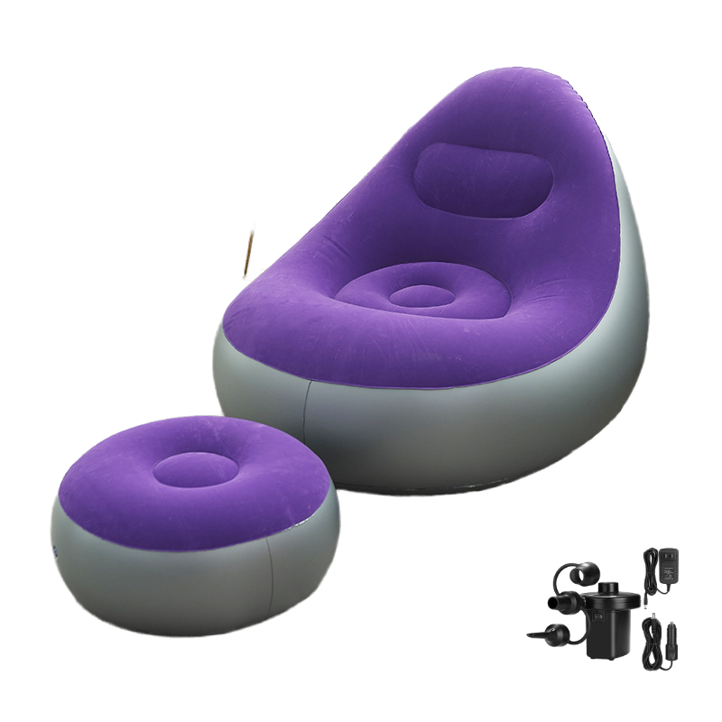 Комплектът включва удобна поставка за крака и електрическа помпа за лесно и бързо напомпване. Ергономичният дизайн с висока облегалка и мека велурена повърхност гарантира приятно усещане при допир и стабилна опора за тялото.