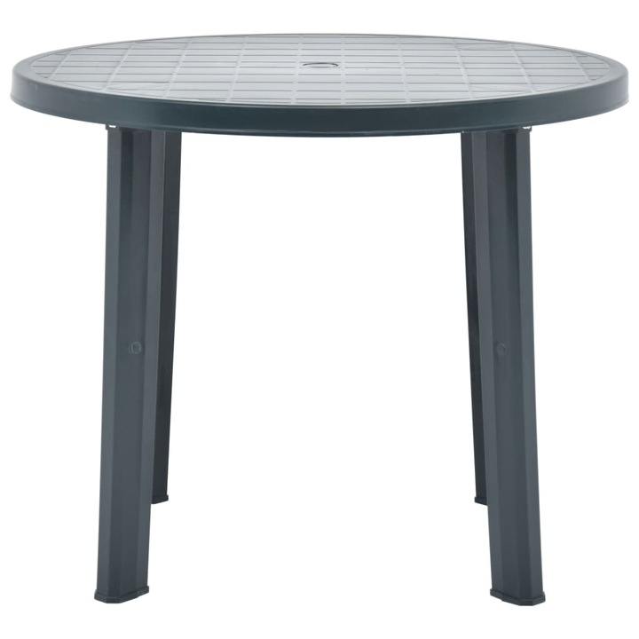 Това е правоъгълна градинска маса, с леко заоблени краища и ъгли, за допълнителна безопасност. Тъй като е зелен на цвят, той се вписва чудесно в различни видове декорации. Представлява висока издръжливост, така че да издържа без проблеми при неблагоприятни атмосферни условия.