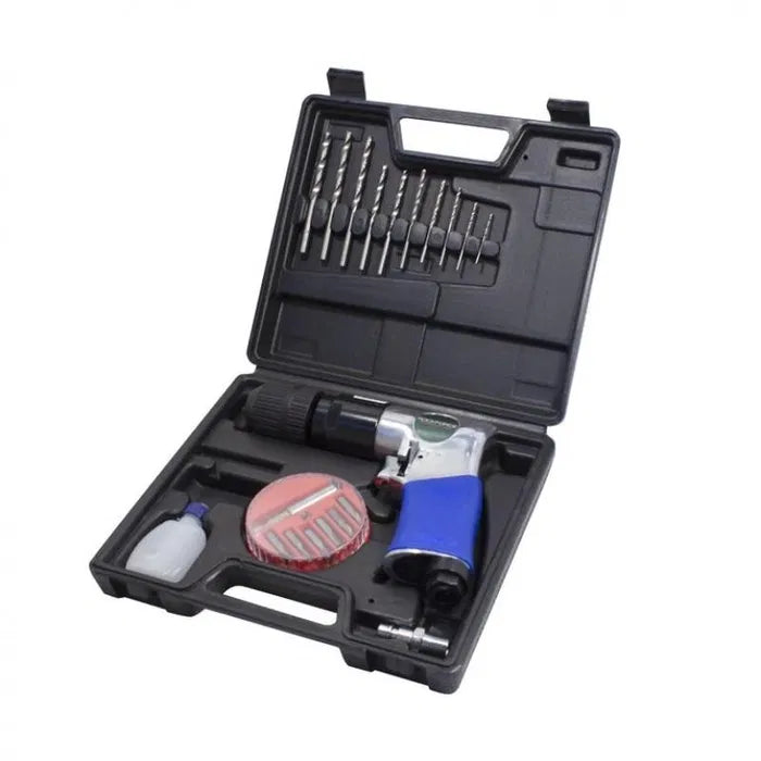 Пневматична бормашина с реверс, комплект битове и бормашини20 части (патронник: 1-10mm, 2200rpm, 6.3Bar, 1/4'' фитинг)