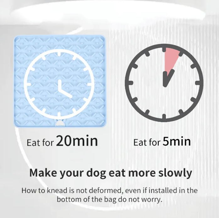 Подложката за бавно хранене е изработена от безопасни и здравословни материали, които са лесни за почистване и поддържане. Тя предоставя устойчива и сигурна основа, осигуряваща стабилност по време на хранене. Допълнително, продуктът е подходящ за кучета и котки от всички породи и размери.