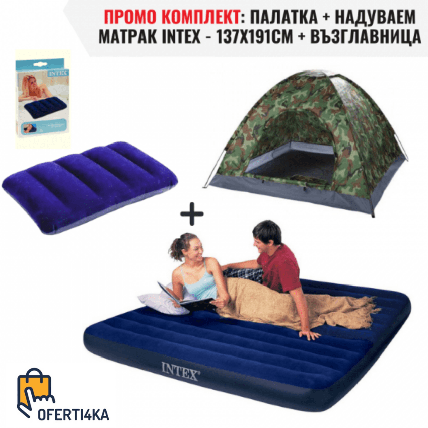 ПРОМО КОМПЛЕКТ: ПАЛАТКА + НАДУВАЕМ МАТРАК INTEX - 137X191CM + ПОДАРЪК Надуваема възглавница oferti4ka