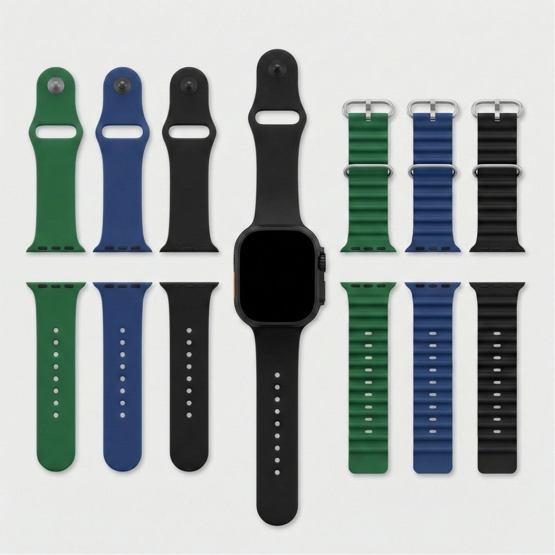 - 7 сменяеми каишки от гума и плат за различен стил и удобство