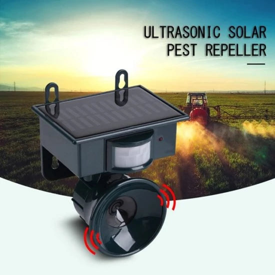 Соларен ултразвуков уред, който ще прогони всички досадни птици, насекоми и гризачи. В него има вграден датчик за движение и когато се активира, то звуковите вълни влизат в действие. Уредът е водоустойчив и е със соларен панел, като можете сами да регулирате силата на звука. Безопасен е за вас и вашето семейство, тъй като не работи с химикали, а само със звука.
