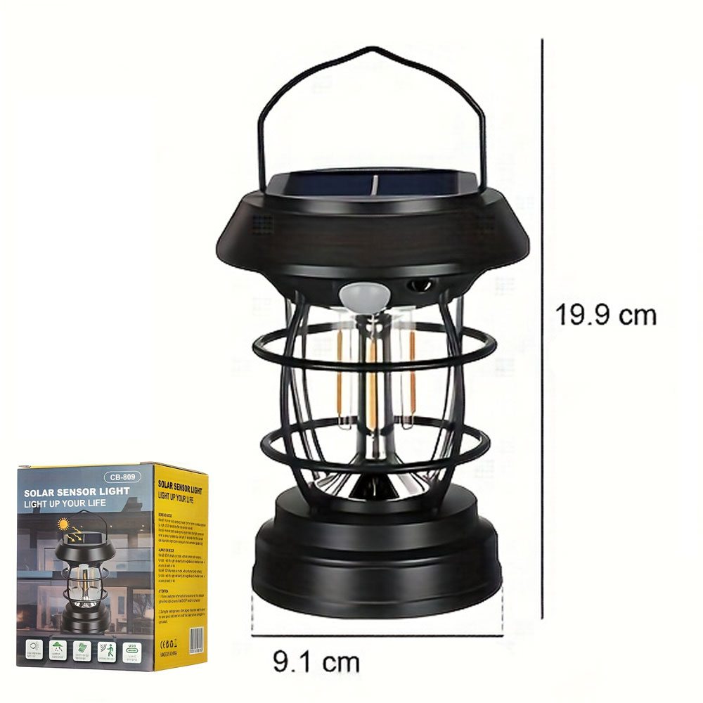 Соларната лампа COBA CB-809 е модерно и практично решение за външно осветление, комбиниращо соларно зареждане, автоматично включване при движение и елегантен дизайн с „ретро“ ефект. Подходяща е за дворове, тераси, входове, алеи, къмпинг и зони без електрическо захранване.