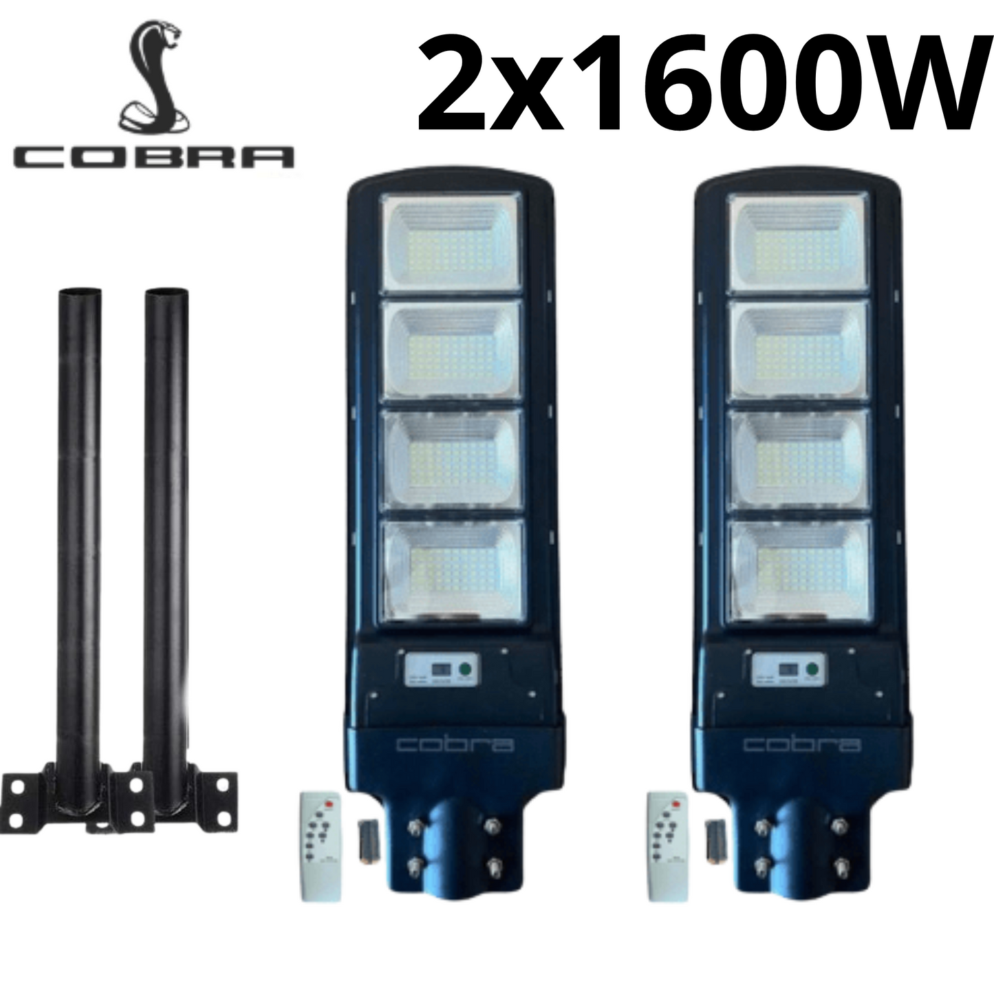 Соларна лампа Cobra Pro 1600W - улична 2бр. + подарък стойки 2бр