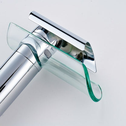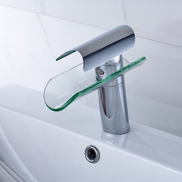 Стилна ръкохватка, покриваща улея за вода отгоре, върти се наляво-надясно за топла и студена вода и нагоре-надолу за усилване и намаляване.