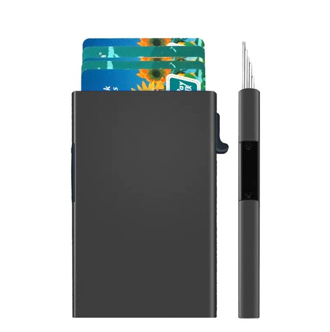 Твърдият елегантен алуминиев RFID калъф за карти представлява върховно решение за модерния индивид, който цени сигурността и стила си. Този изискан аксесоар съчетава издръжливостта на алуминиева конструкция със завършеността на елегантен дизайн. Вградената RFID защита гарантира сигурността на вашите чувствителни данни от потенциални злонамерени сканирания, докато калъфът осигурява удобно и организирано съхранение на вашите кредитни и дебитни карти. Този калъф е символ на изисканост и функционалност, предоставяйки ви спокойствие и стил при всеки ежедневен или пътнически излет.