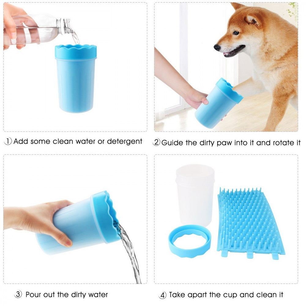 Разходките с домашния любимец винаги са дълго очаквано преживяване. Е, поне за животинката. След като е изразходило насъбраната енергия, ходило е къде ли не и е време за прибиране, със сигурност няма да сте щастливи от всички петна, които трябва да избършете от пода. За да очаквате и вие разходките с приятна емоция, имаме специално предложение за момента след прибирането – уникална чашка за измиване на кучешки лапи. Моделът е много хитро приспособление, с което лапите на животинката ще станат отново чисти, при това без и вие да ставате мокри или пък да се налага да се борите с желанието на любимеца да бъде изкъпан. Чашките разполагат с вътрешност от меки силиконови влакна, които всъщност вършат работата. Напълвате чашката с вода и пъхате лапата на кучето вътре. С въртящи движения събирате цялата мърсотия, след което подсушавате лапите и сте готови. Изливате водата, изваждате вътрешността на чашата и я изплаквате под течаща вода. И така до следващия път!