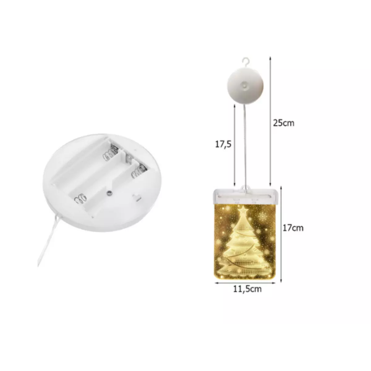Стъклописът е изработен в 3D, което придава впечатляваща визия както отвътре, така и отвън. Захранван с батерии, той ви осигурява пълна свобода да го поставите навсякъде, без да се тревожите за наличието на електричество или кабели. Тази изящна декорация е идеална както за празнични украси, така и за употреба като нощна лампа, създаваща уютна и атмосферна светлина. Окачването е лесно благодарение на прозрачна вакумна вендуза, което прави орнамента подходящ за всякакви гладки повърхности.
