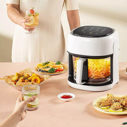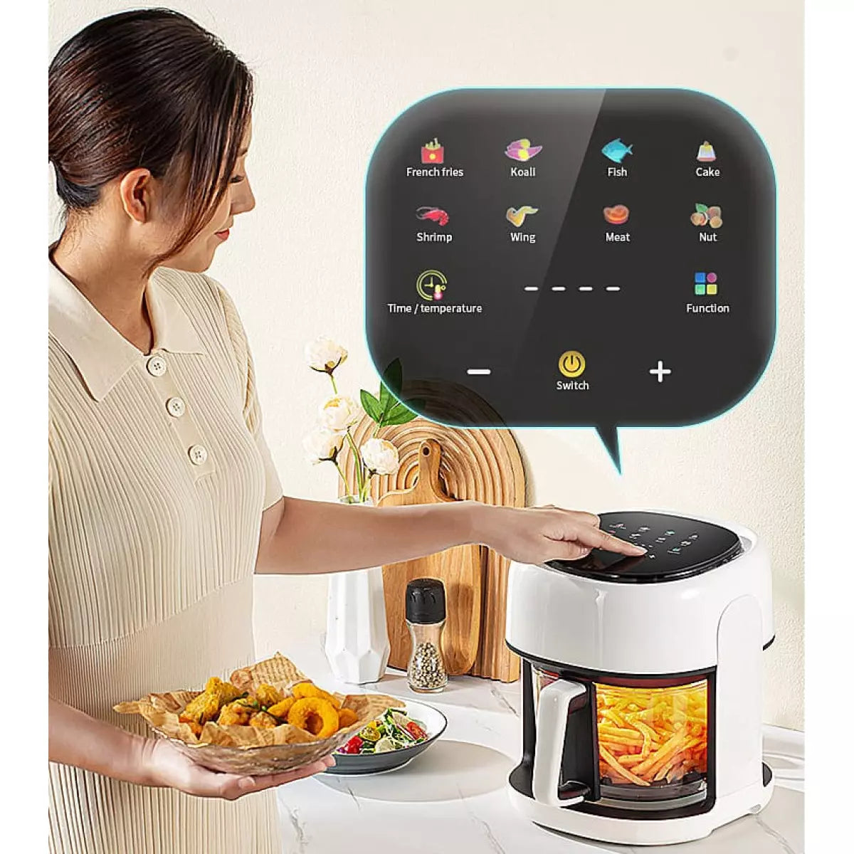 6 литра Air Fryer - Фритюрник с горещ въздух и прозрачна кошница , 2400 W, Тъч скрийн управление