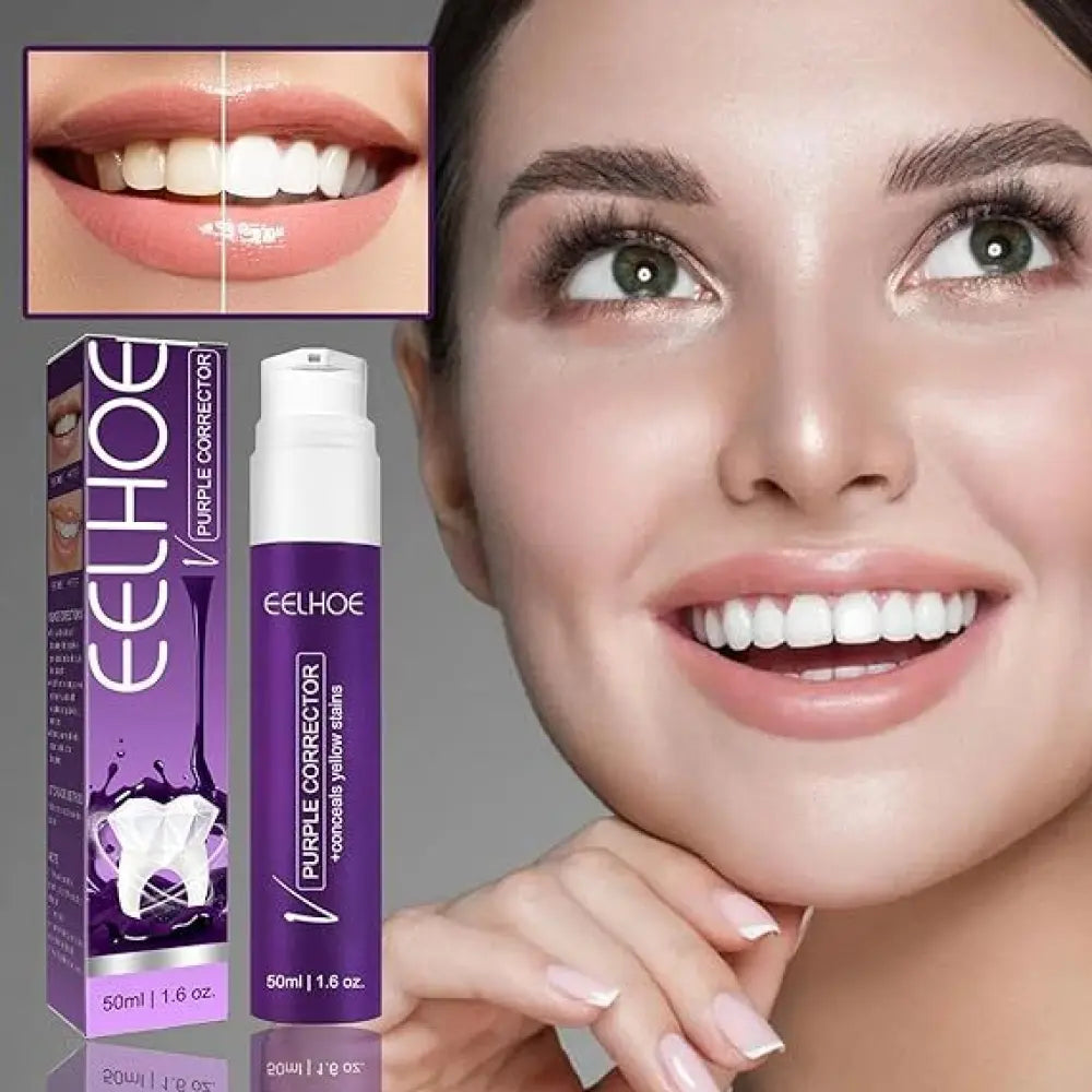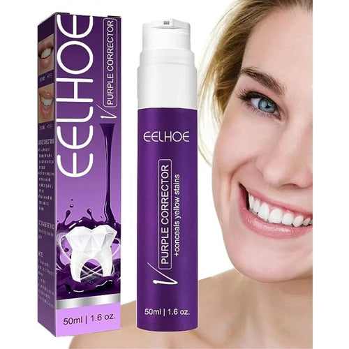 Eelhoe Purple Corrector е иновативна паста/гел за избелване на зъби, специално формулиран да неутрализира жълтеникавите оттенъци чрез лилавия си тон. Подходящ за домашна употреба, с лесна апликация и неагресивна формула