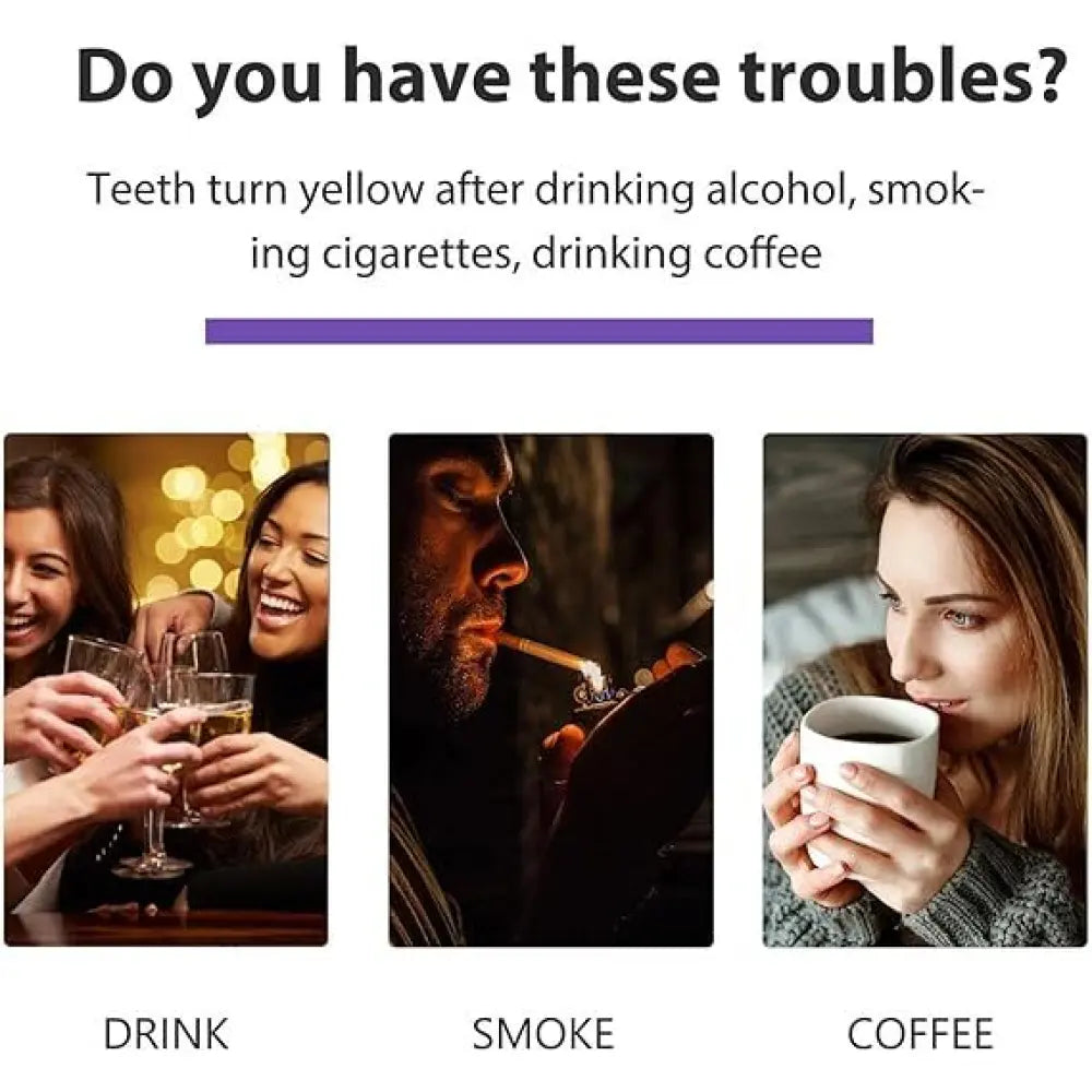Лилавият нюанс комплиментира жълтото на зъбите, „коригирайки“ цвета за по-бяла видимост, без да отстранява емайла. Редовното използване подсилва ефекта. За чувствителни зъби и нежно избелване .