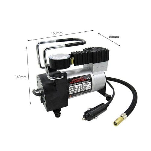 Интересното при този модел е, че той е по-устойчив от останалите. Това става благодарение на здравия метален корпус и подсилените маркучи и кабели. Можете да действате навсякъде с него, стига от запалката на автомобила, откъдето се извършва захранването, до желания обект за помпане, да има максимум три метра разстояние. Всъщност обсегът се увеличава с още цял метър, благодарение на дължината на въздушния маркуч. Захранването е със стандартните 12 волта, с ампераж 12.5.