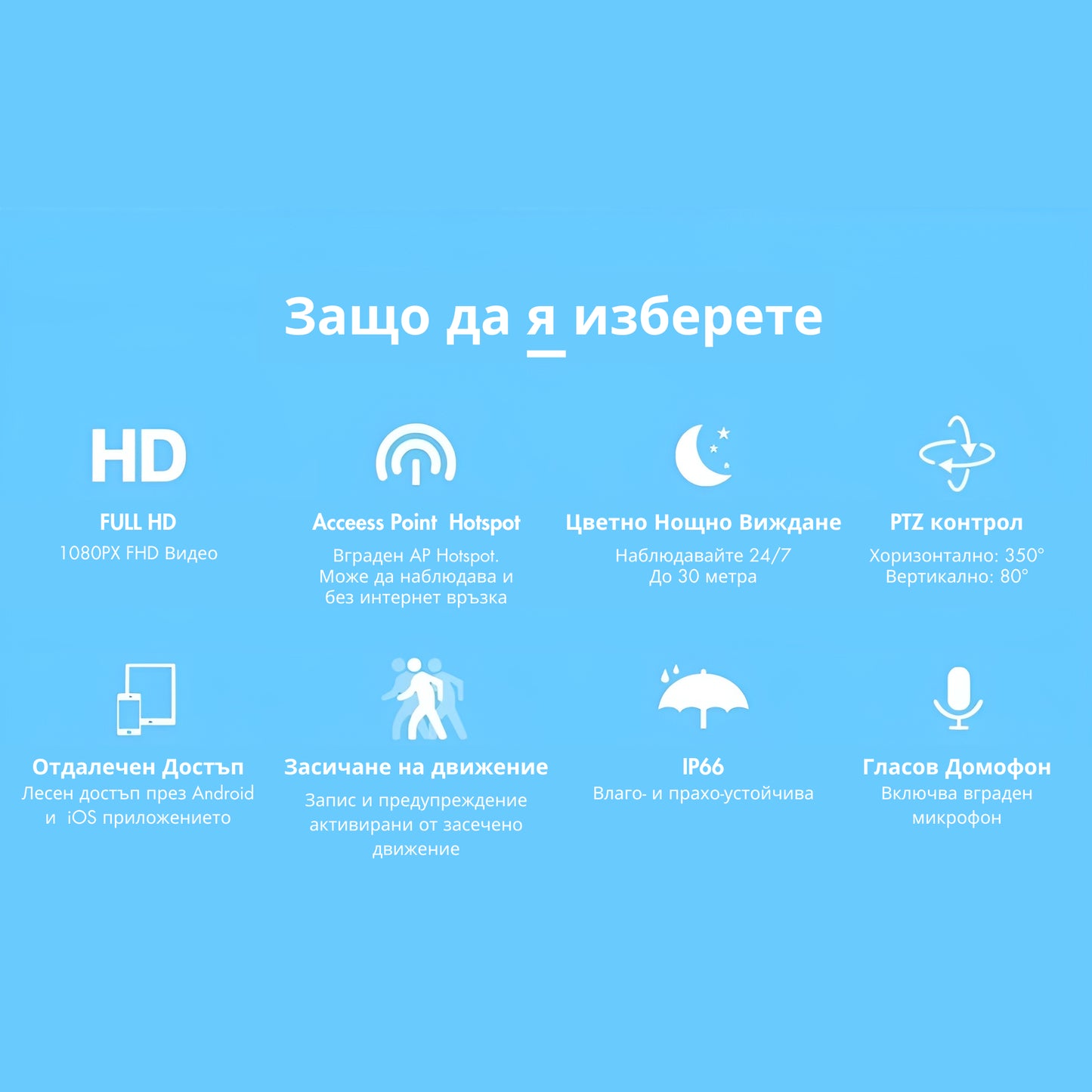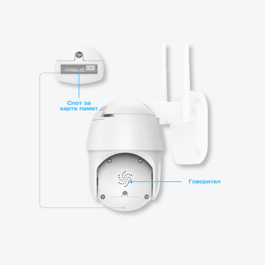 Камерата предоставя пълно управление на мащабирането, наклон/завъртане и приближаване/отдалечаване. Това ви позволява да наблюдавате цялата зона, която ви интересува. Без да пропуснете важни детайли. Всичко това може да контролирате от мобилното приложение.