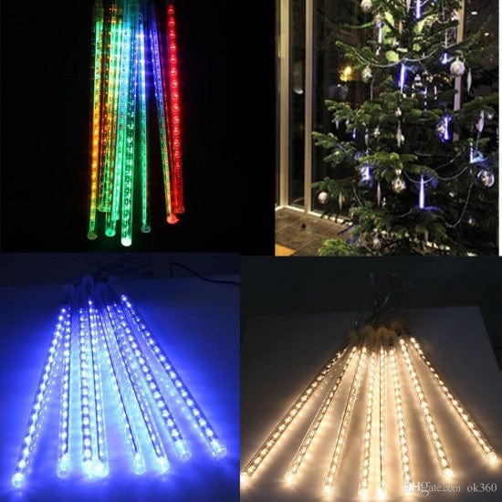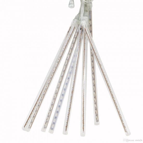 Съчетавайки тези поразителни светлини, ние ви представяме нашите зашеметяващи светодиоди Meteor Rain. С най-чисто белият цвят и последователното мигане на светодиоди, тези светлини със сигурност ще очароват вашето събитие. Закачете ги до вашите градински дървета на открито или на закрито и включете светлините, за да постигнете този невероятен небесен ефект точно на празника на вашето събитие. Добавете супер WOW фактор към вашата специална празничност, като закачите тези пищни светлини, за да придадете пълен космически вид на небесни метеори, обсипващи се с цялото им великолепие и ефирна магия. Падащите светлини изглеждат като жарава, падаща след изгарянето на фойерверки, топло и любящо чувство, много подходящо като украса за Коледа, сватби, партита и др. Този вид креативен светлинен ефект може да направи вашата нощ празнична и незабравима. Ефектните LED каскадни светлини са идеални за коледна елха, парти, Нова година. Подходящи за вътрешна и външна употреба.